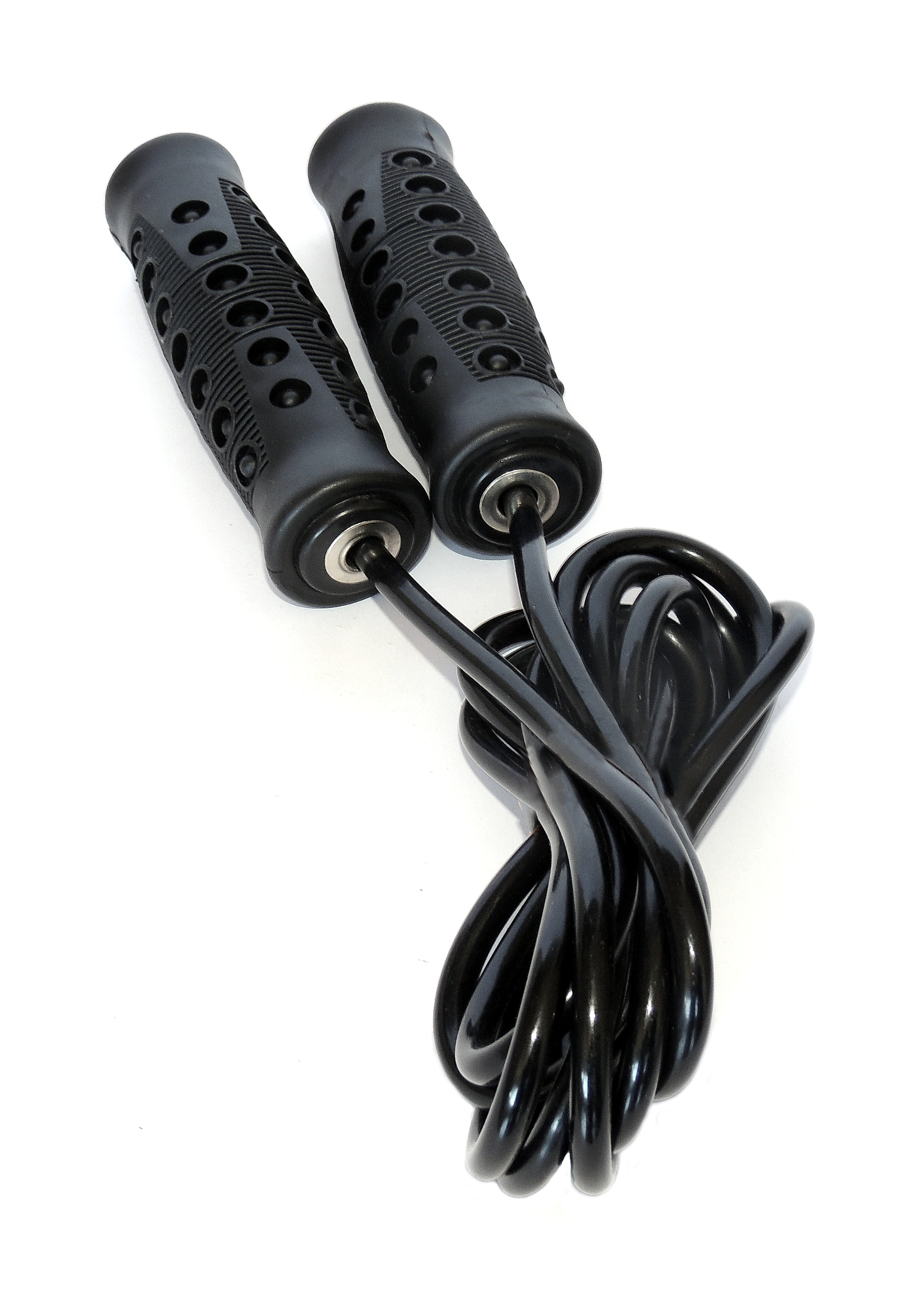 Esta corda de poliéster de 6 mm com cabo de PVC e sistema giratório embutido.